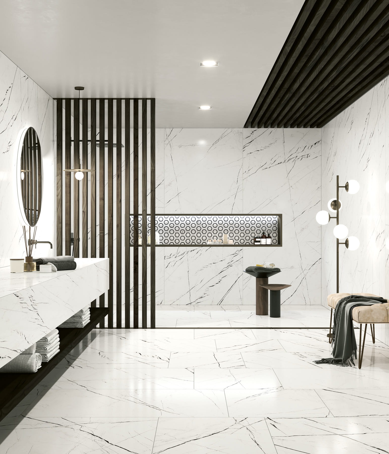 Dzięki swoim właściwościom Markina White pozwala na stworzenie spójnych, stylowych aranżacji w różnych przestrzeniach, wprowadzając do nich elegancję i luksusowy charakter.