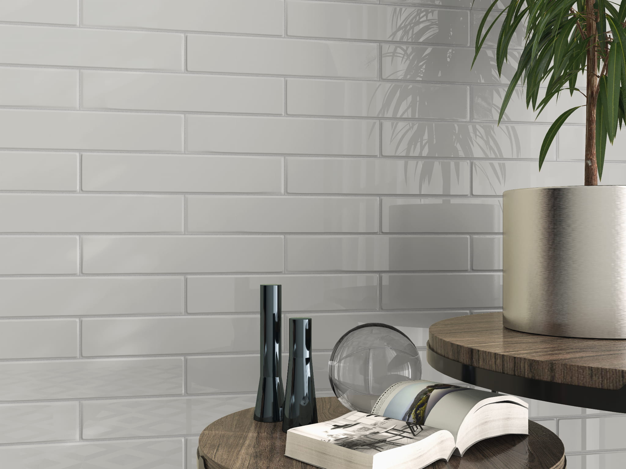 Płytka cegiełka na ścianę 5x25 cm jasna szara w połysku - Elegancja i Wyrafinowanie od Hiszpańskiego Producenta Estudio Ceramico