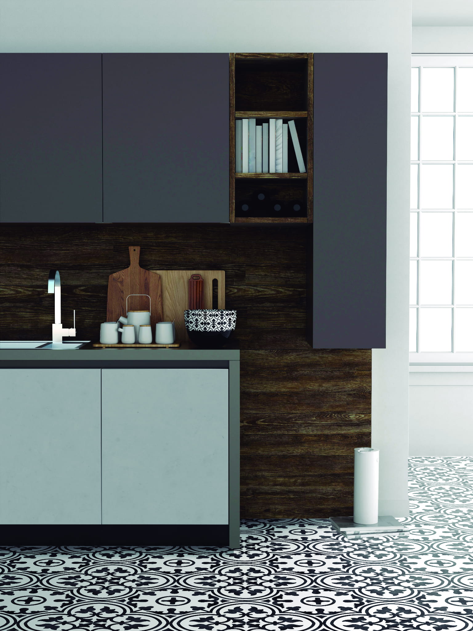 Kolekcja FRAME_15 to hołd dla ponadczasowej elegancji klasycznych dekoracji majolikowych, połączony z nowoczesnym podejściem do formy i wzornictwa. Model Clover B&W w kontrastującej czerni i bieli stanowi doskonały przykład tej estetyki – przyciąga wzrok geometrycznym wzorem i matowym wykończeniem, które dodaje wnętrzu głębi i charakteru.