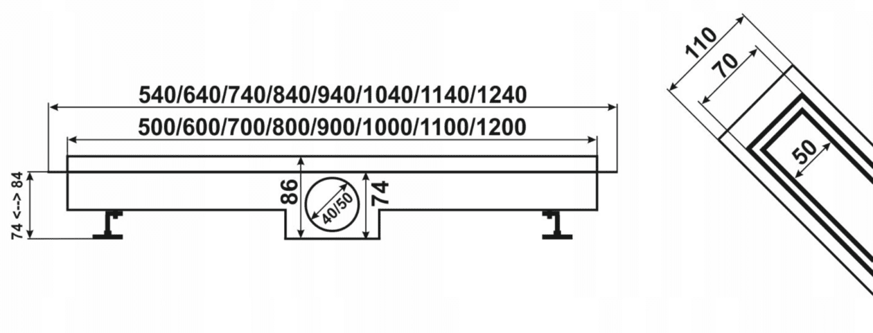 | Rodzaj odpływu | Liniowy podłogowy |