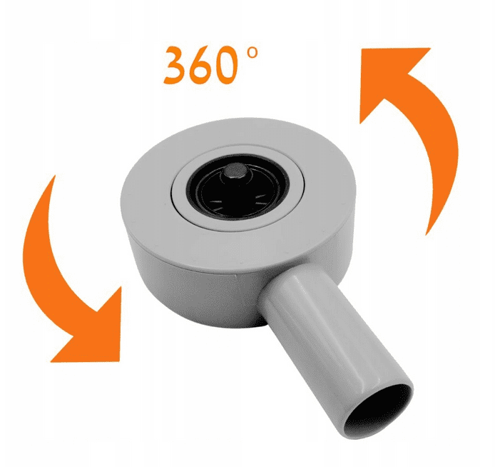 Zastosowanie obrotowego odpływu 360° umożliwia dokładne ustawienie kierunku syfonu i wygodne scalenie go nawet z istniejącą instalacją kanalizacyjną.