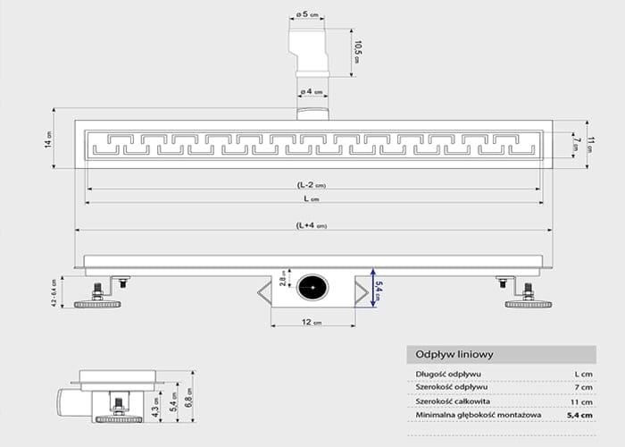 | Rodzaj odpływu | Liniowy podłogowy |
